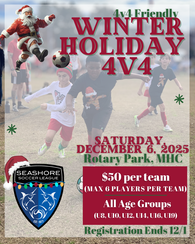 Get your team and your winter/holiday attire ready! Winter Holiday 4v4 friendlies is a fun day of small sided soccer games.